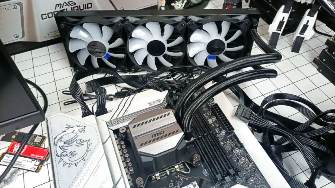 水冷安装起来很方便 ,我觉得比风冷要方便多了。微星这款水冷支持漏液包赔,说明质量还是很可靠的。水冷泵采用了高耐久三相减震马达,可减少震动,可以保持长时间稳定运行。水管为全橡胶材质,并且还外缘包裹着黑色尼龙网,不仅增加了水管的防扯拽强度,还具有防蒸发效果。