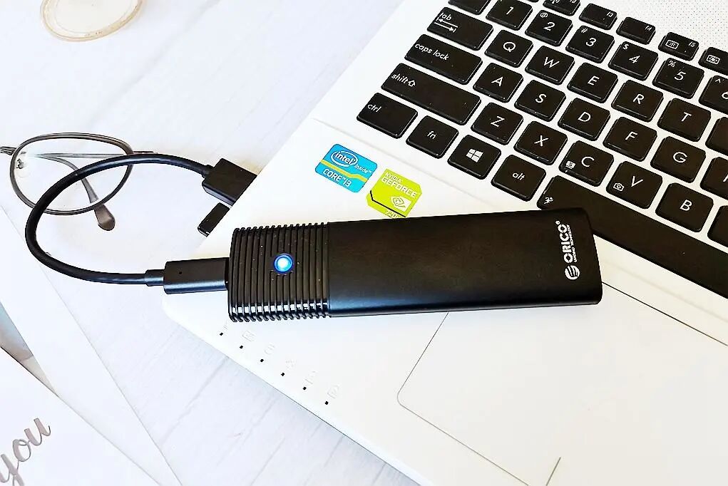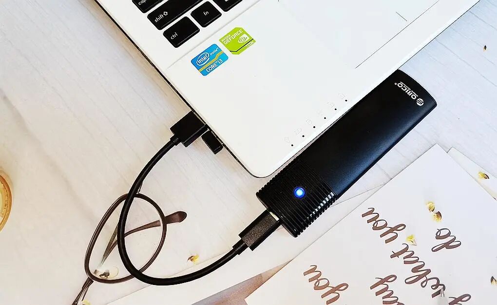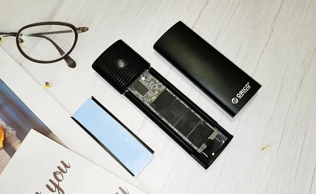 为了能够更好的对金百达KP260固态硬盘进行测试,我们本次选用奥睿科USB4.0固态硬盘盒组成PSSD进行测试;搭配比较简单,将固态硬盘和散热贴贴合在一起后,插入到硬盘盒的卡槽内即可使用。