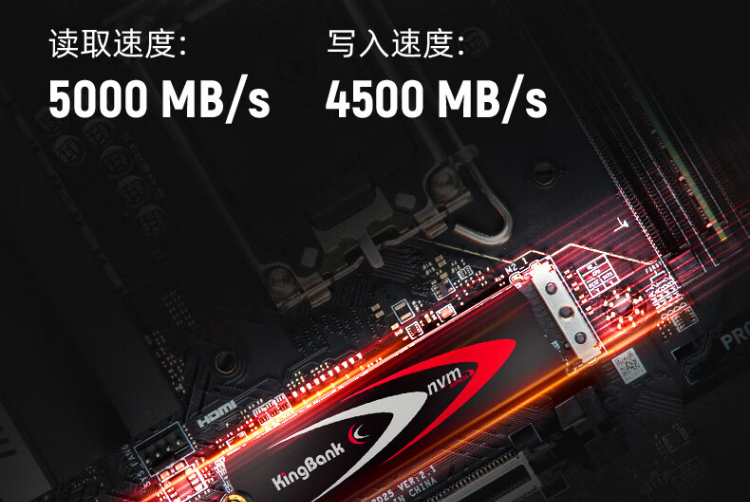 官方数据给出的金百达KP260固态硬盘的读取速度为5000MB/s,而写入速度也是达到了4500MB/s,可以说整个传输速率非常快,那么我们进行实际测速;