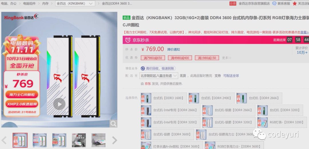 前面我测试了采用原厂海力士CJR颗粒的金百达幻光RGB系列内存,超频性能不错,价格也给力,是一款性价比非常高的内存
