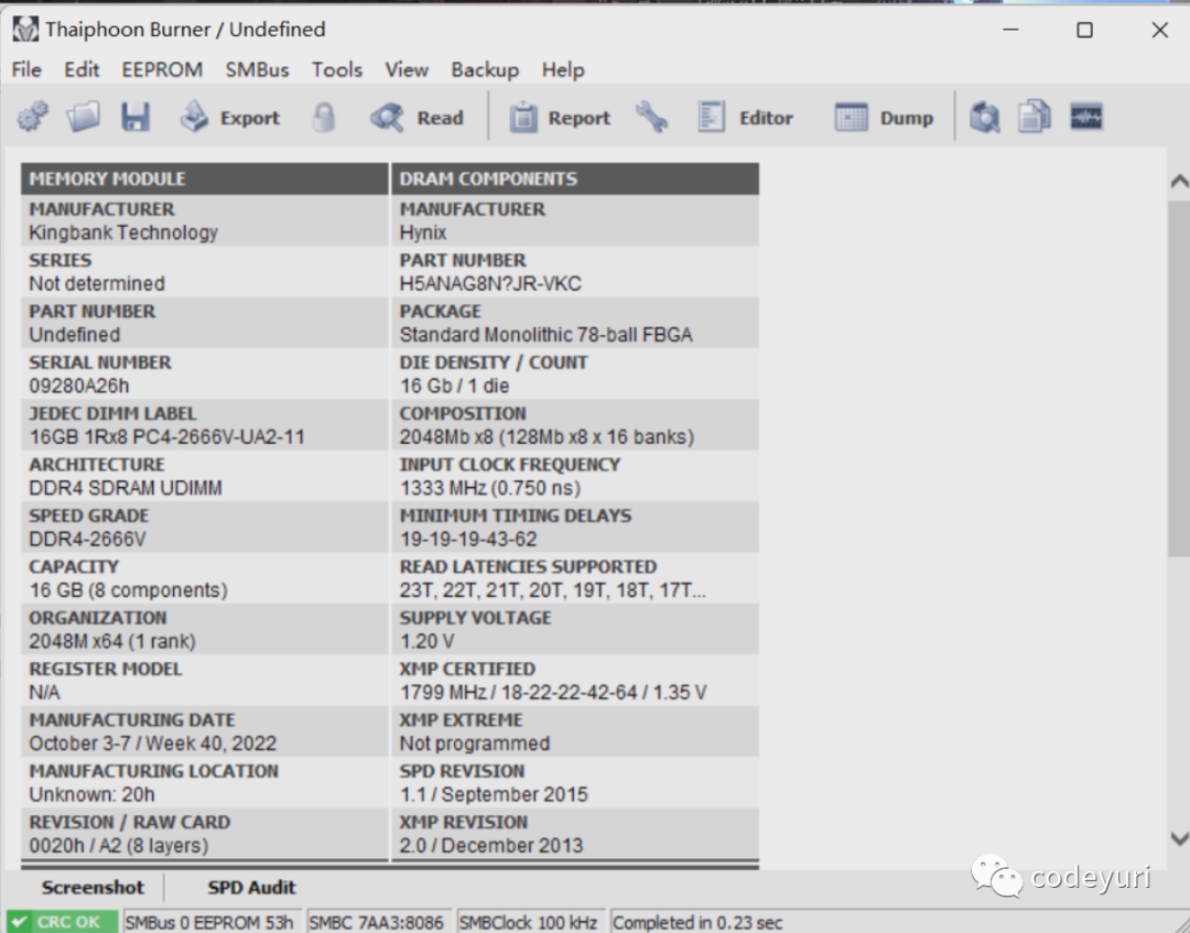 上机在台风软件可以看到软件识别不出啥颗粒,不过我都拆马甲确认是新海力士CJR颗粒了